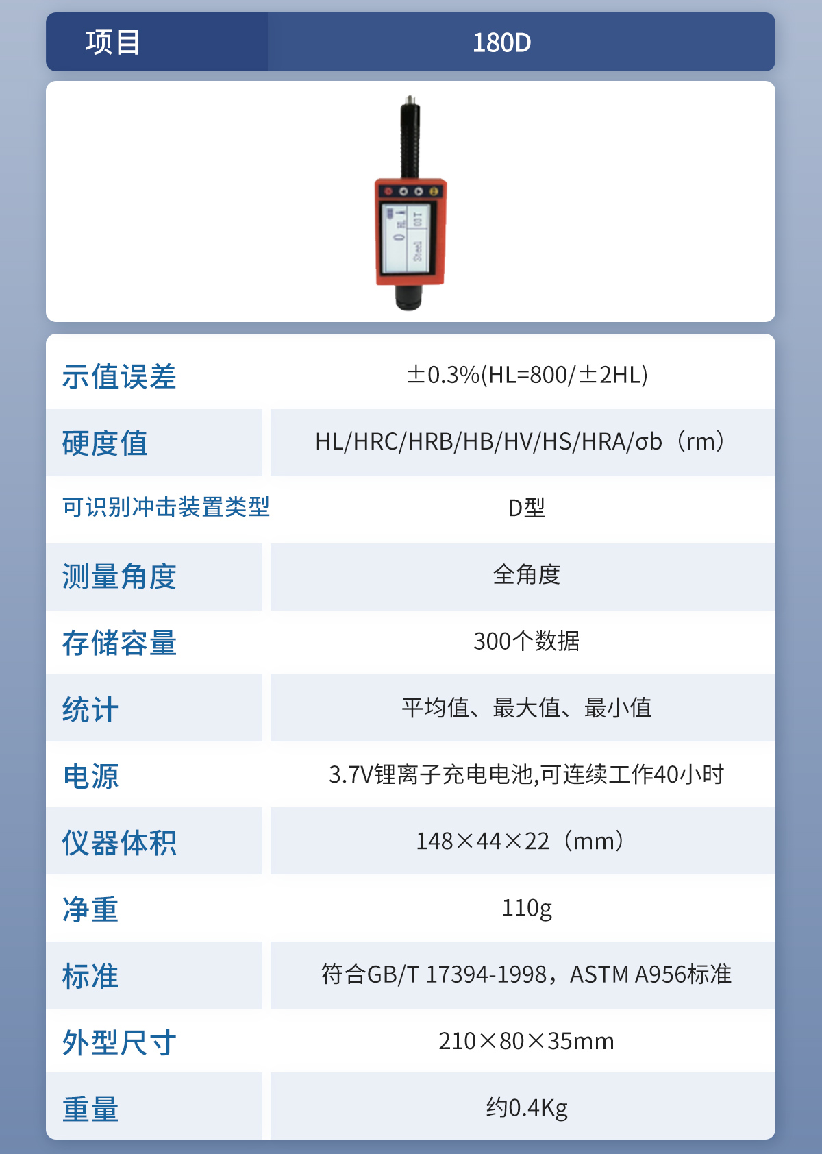 ● 设计依据标准:《里氏硬度计技术条件》 JB/T 9378-2001;
