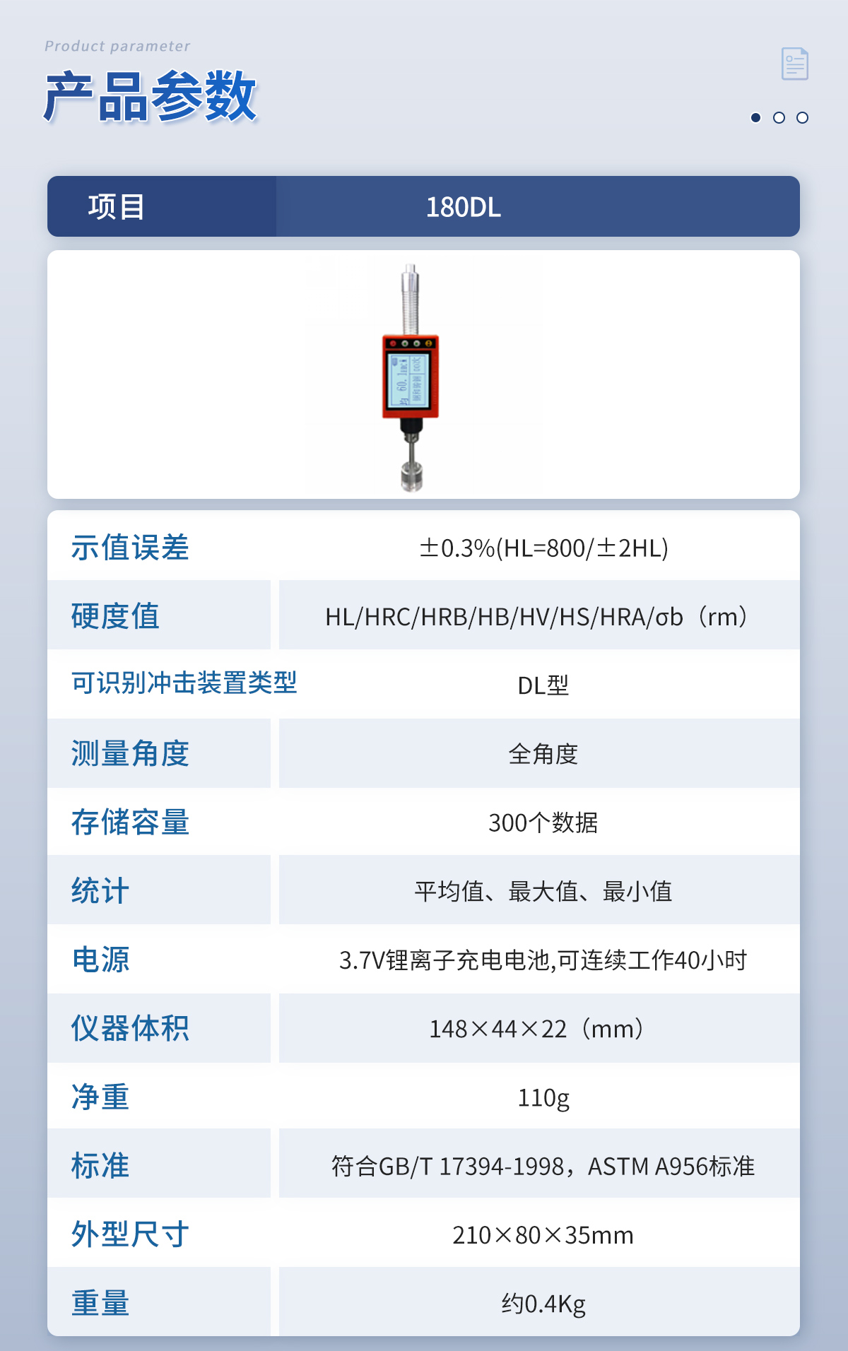 | 标准 | 符合GB/T 17394-1998,ASTM A956标准 |