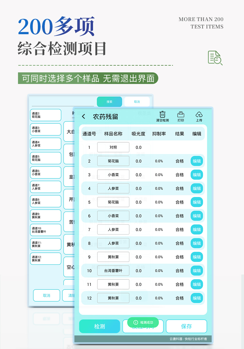 8、仪器具有品类多种类样品菜单库,可灵活选择检测样品,不同的检测通道可同时检测不同的样品项目。