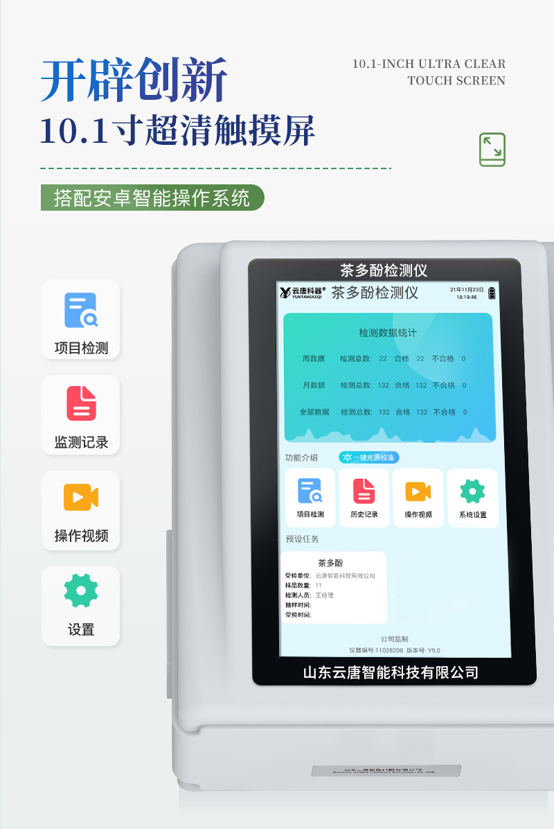 YT-F12茶多酚检测仪可快速定量检测各类茶饮料、乳饮、果蔬、粮食制品、肉制品、食用油脂等中茶多酚含量。茶多酚检测仪可以广泛应用于产品质量监督检验、工商管理、茶叶批发市场、茶叶0.深加工基地、饮料企业、超市、商场、各大食品安全监测系统等部门。