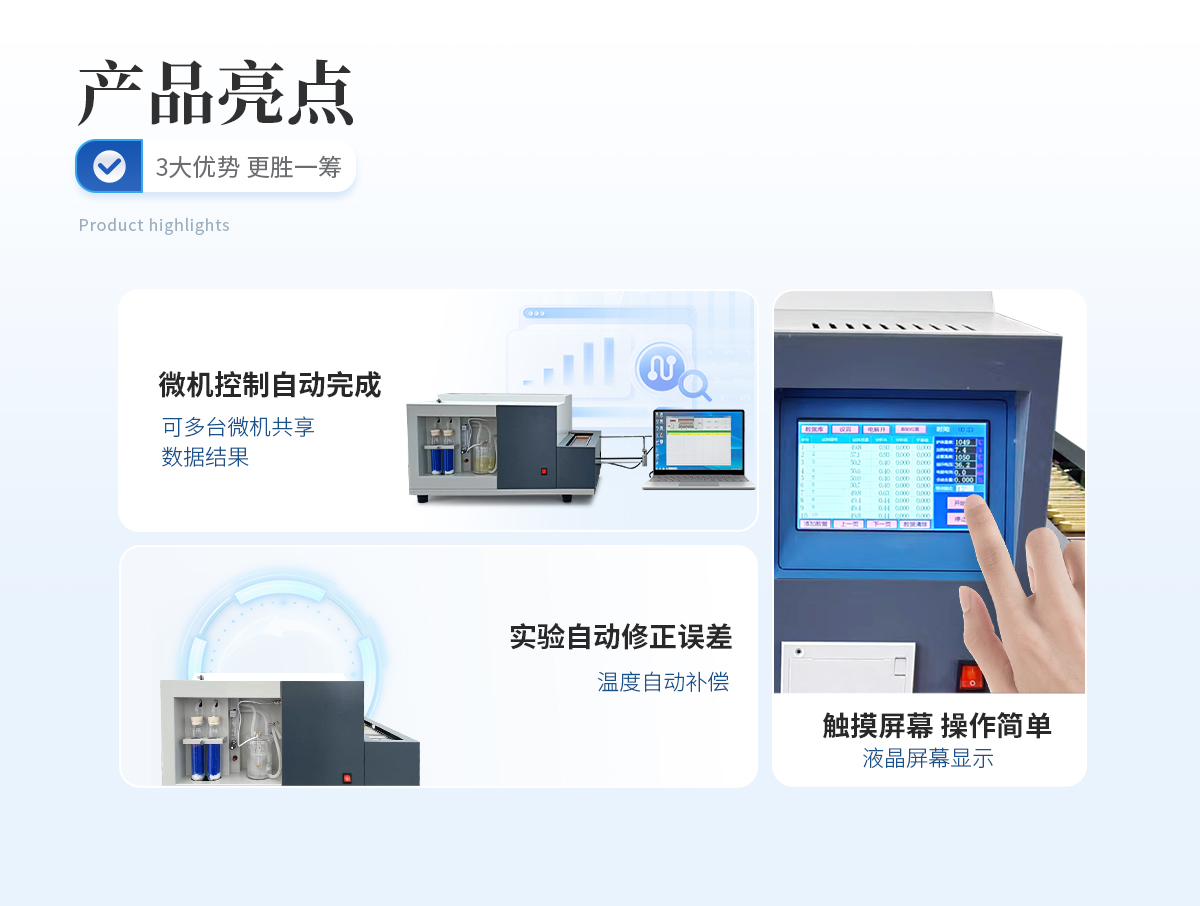 | 1、整个测试过程由计算机控制自动完成。 | 2、误差可以通过实验自动修正。 | 3、测试结果永久保存,可查阅、打印。 | 4、温度自动补偿,测温误差5%。 | 5、具有硅碳管开机自动保护和过流保护等功能。 | 6、本系统将高温炉、磁力搅拌器、空气净化装置、电解池、自动送样机构、单片机控制线路合理地放置在同一机箱内,使整机系统美观、体积小、系统的放置与连接方便、系统的操作与日常维护简单等特点。 |