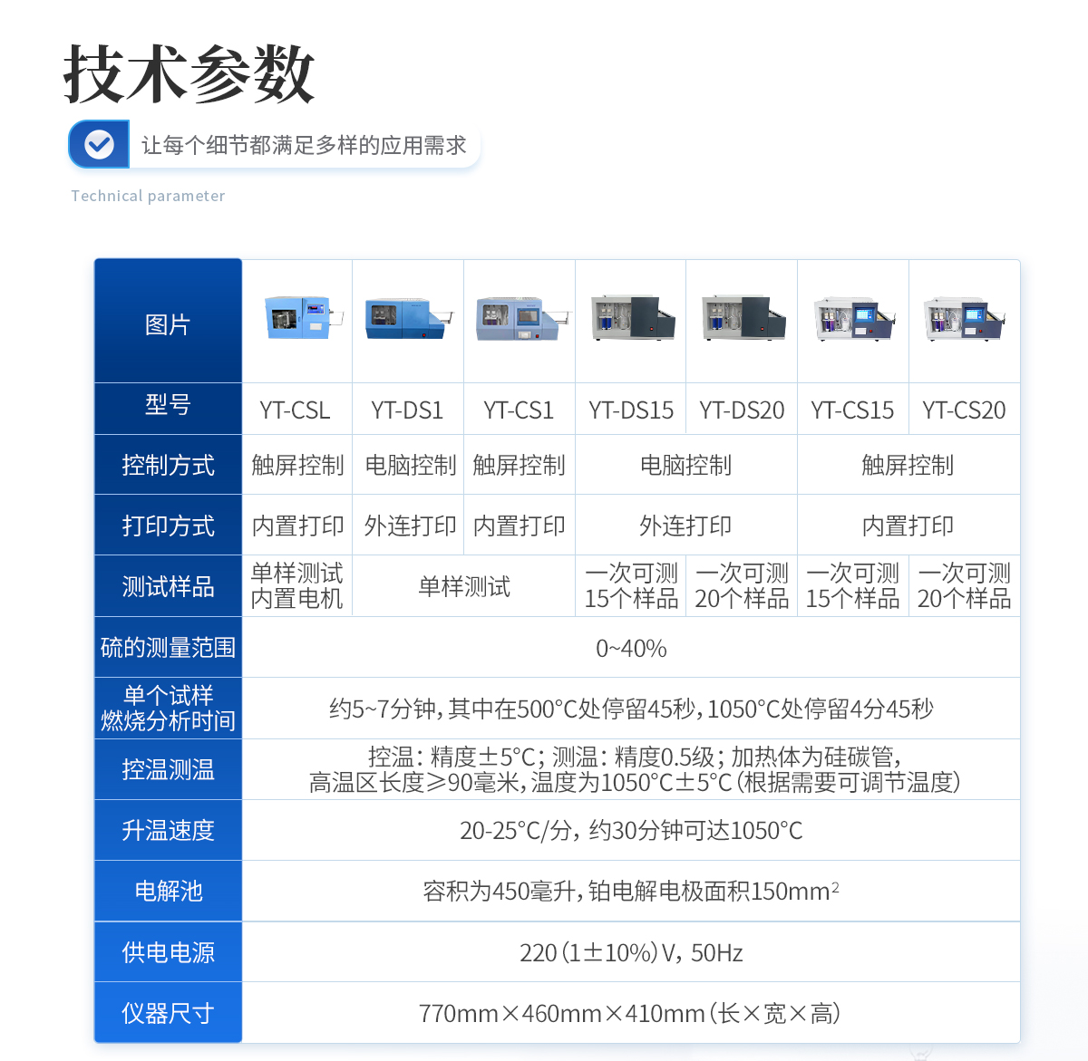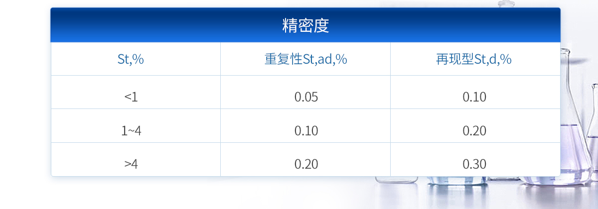 | 1、 硫的测量范围:0—40%. | 2、 单个试样燃烧分析时间:约5--7分钟,其中在500℃处停留45秒,1050℃处停留4分45秒。 | 3、控温:精度±5℃。测温:精度0.5级;加热体为硅碳管,高温区长度≥90毫米,温度为1050℃±5℃(根据需要可调节温度) | 4、 密度:如下表规定: St,% 重复性St,ad,% 再现型St,d,%<1 1="" 0.05="" 0.10="">4 0.20 0.30 | 5、升温速度:20--25℃/分,约30分钟可达1050℃。 | 6、电解池:容积为450毫升,铂电解电极面积150mm2 。 | 7、供电电源:220(1±10%)V,50Hz, | 8、功率:≤3KW。 | 9、仪器尺寸(mm) 长×宽×高(770×460×410) |
