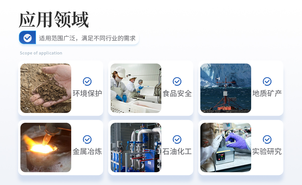 全谱直读型电感耦合等离子体发射光谱仪 ,是目前无机元素分析的主流产品,它具有光谱干扰小,稳定性好、分析快速等优点,是无机元素分析领域常用的手段。可广泛应用于环境保护、食品安全、地质矿产、冶金、有色金属、稀土、化工、临床医药、石油制品、半导体、农业研究等各个领域。用于测定不同物质中的常量、微量、痕量元素含量,可用于样品中元素的定性、半定量及**定量分析,检出限可达十亿分之一级。