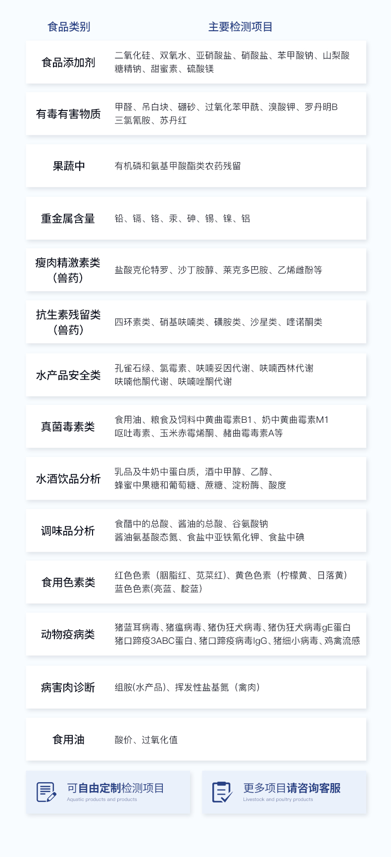 重金属检测仪可广泛应用于大米、粮谷、果品、蔬菜、药材、水质、水产品中重金属铅、镉、六价铬、汞、砷、铁、镍、铝的快速检测,检测项目可根据客户的需求定制。