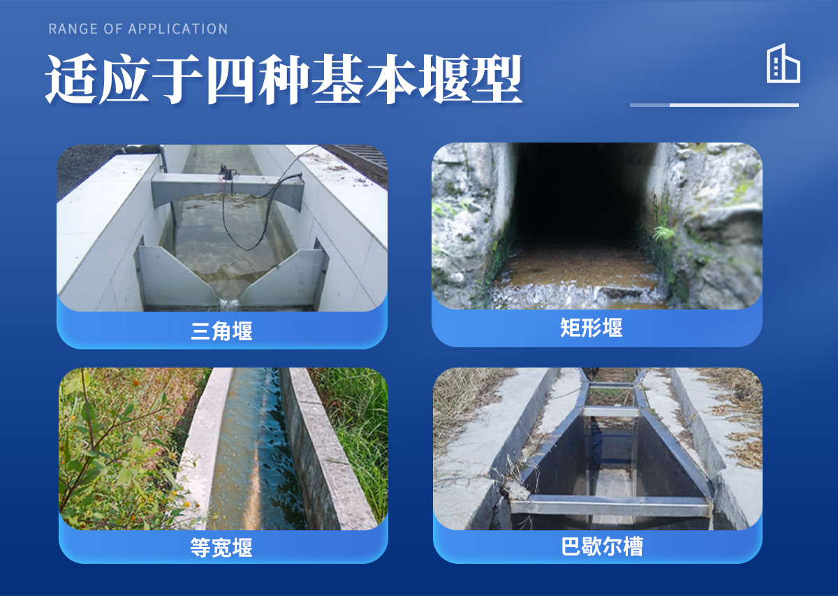 适应于四种基本堰型:三角堰、 矩形堰、 等宽堰、 巴歇尔槽