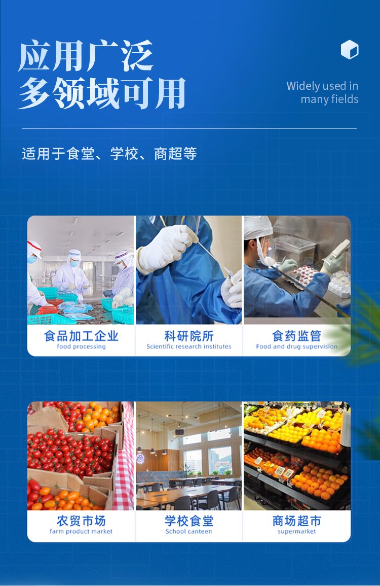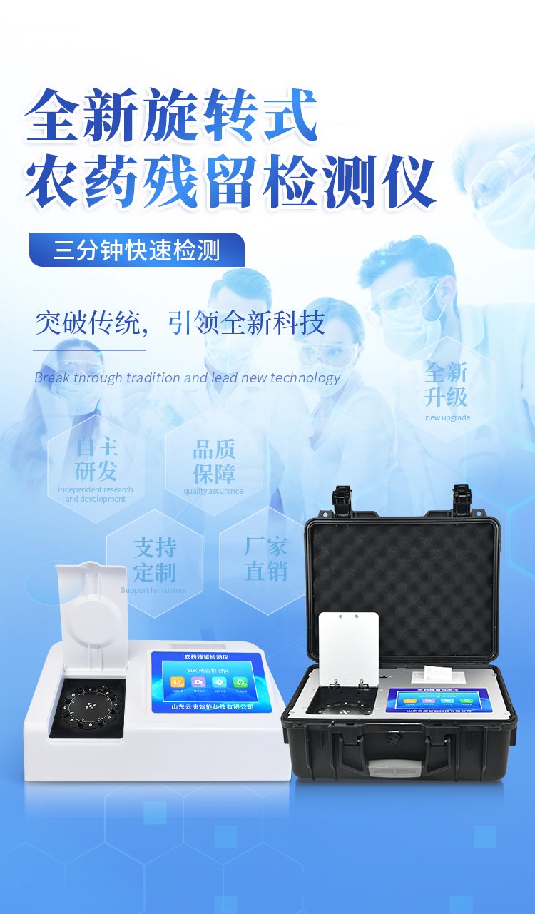 山东云唐智能科技有限公司生产的农药残留检测仪广泛应用于主要用于蔬菜、水果、茶叶、粮食、农副产品等食品中农药残留的快速检测,依据国标GB/T5009.199-2003进行检测,适用于果蔬茶生产基地以及农贸批发销售市场现场检测,餐馆、学校、食堂、家庭果蔬加工前的安全速测等。