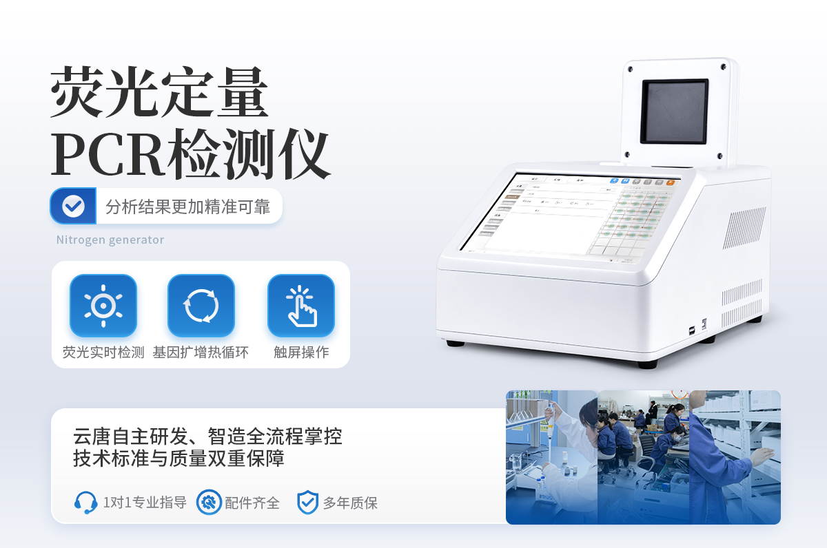 实时荧光定量PCR仪器的原理:聚合酶链式反应(polymerase chain reaction,PCR)是一种用于放大扩增特定的DNA片段的分子生物学技术,它可看作是生物体外的特殊DNA扩增,由高温变性、低温退火及适温延伸等几步反应组成一个温度循环周期,使目的基因得以迅速扩增,具有特异性强、灵敏度高、操作简便、省时等特点,是基因扩增技术的一次重大革新。PCR技术可将极微量的目标DNA特异地扩增上百万倍,从而大大提高对DNA分子的分析和检测能力。