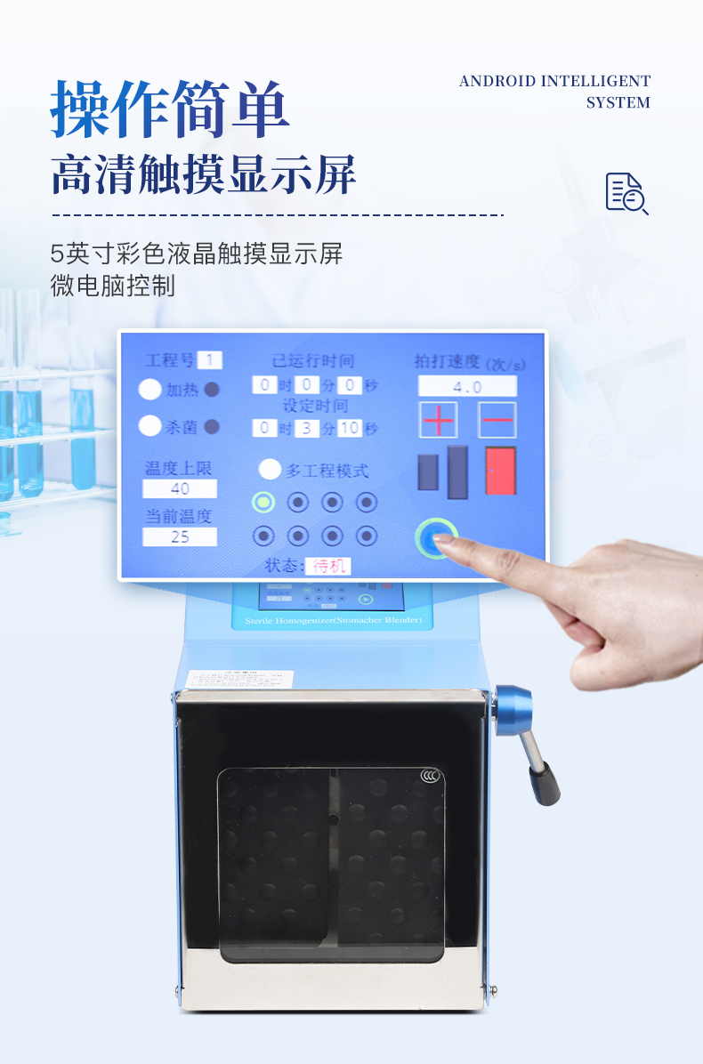应用领域:食品微生物分析;动物组织、生物样品、化妆品的均质处理;肉、鱼、蔬菜、水果、饼干;药品的微生物分析等;