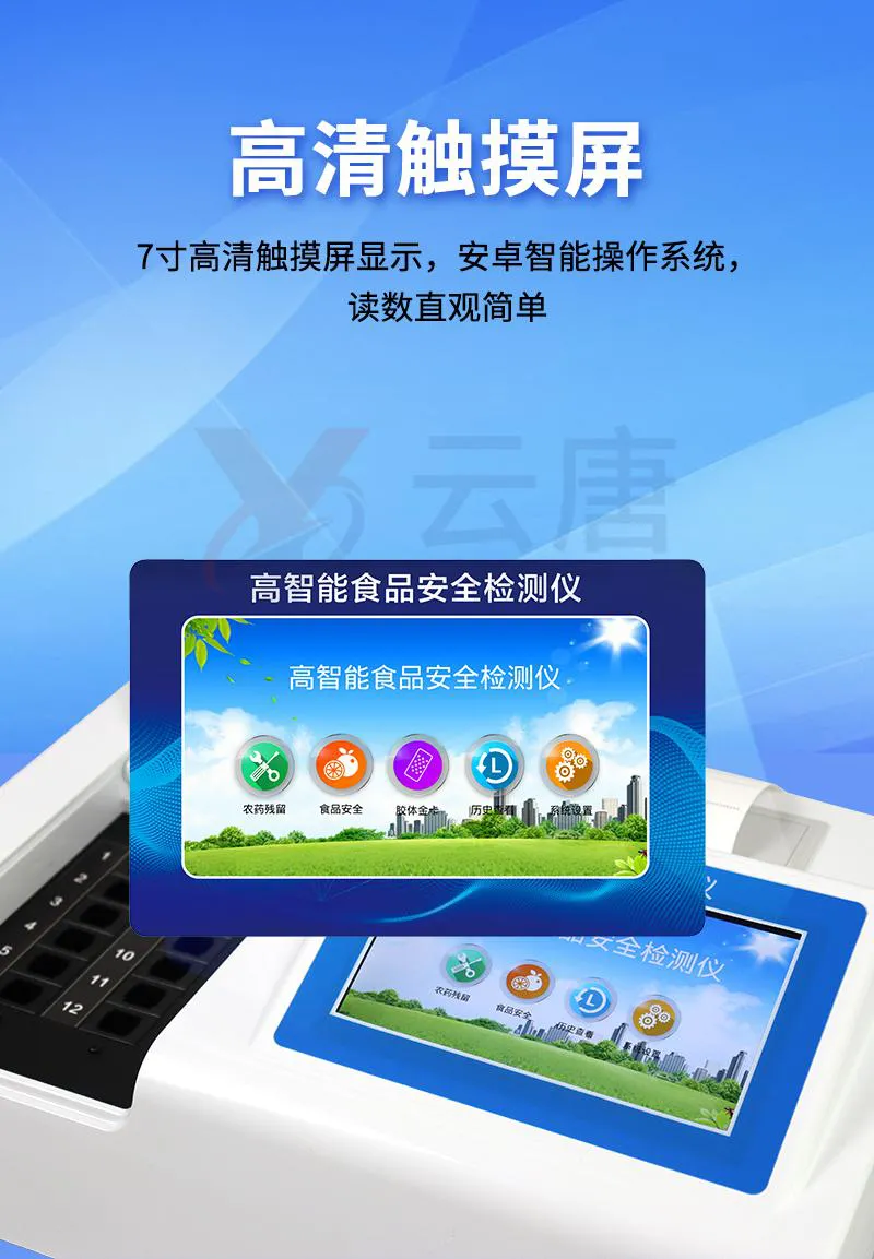 可快速检测各类食品中的甲醛、吊白块、二氧化硫、亚硝酸盐、双氧水、硼砂、农药残留、乳及乳制品中蛋白质的含量,仪器预留其他项目检测程序和端口,根据日后需求可方便的自主增加检测项目。
