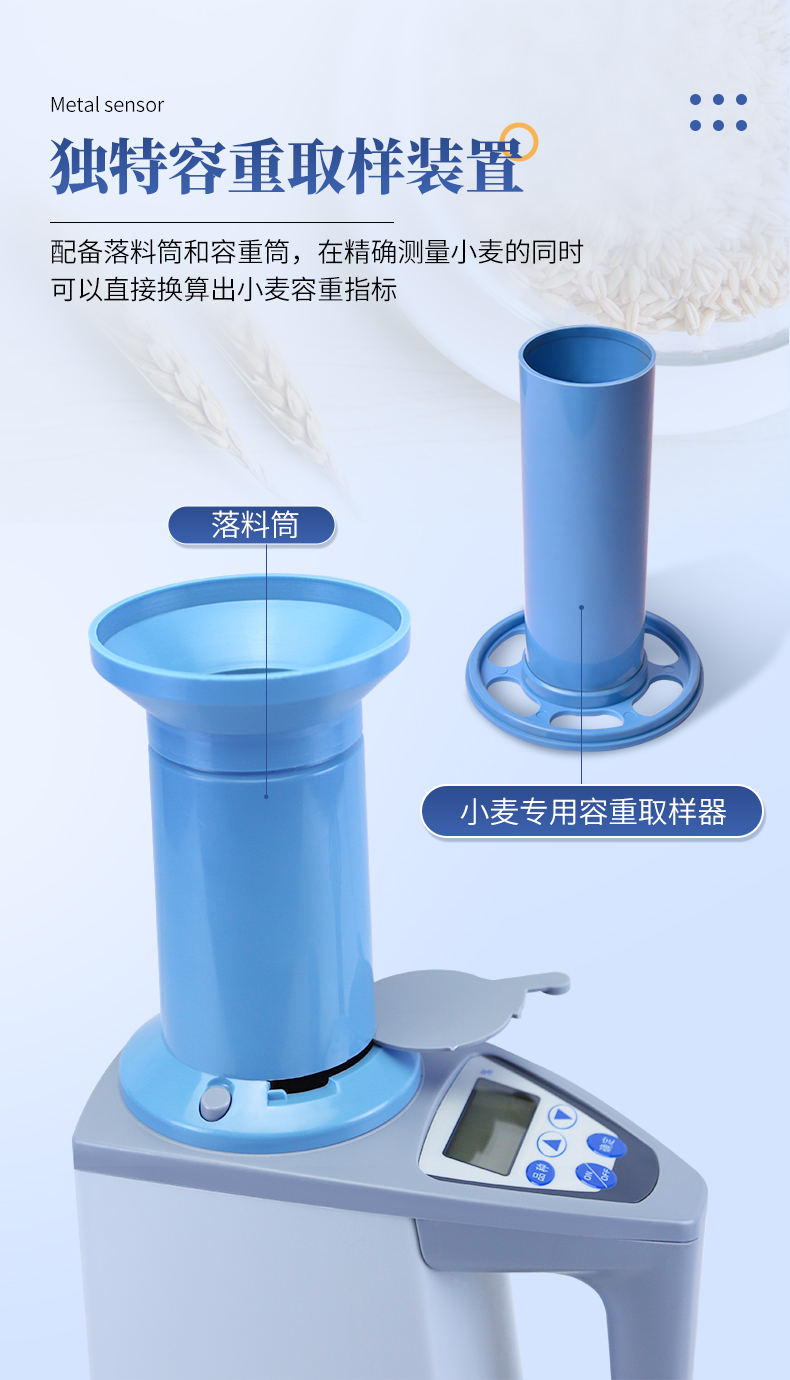 容重换算:独特的专利容重取样装置在**测量小麦的同时,可以直接换算出小麦容重指标。