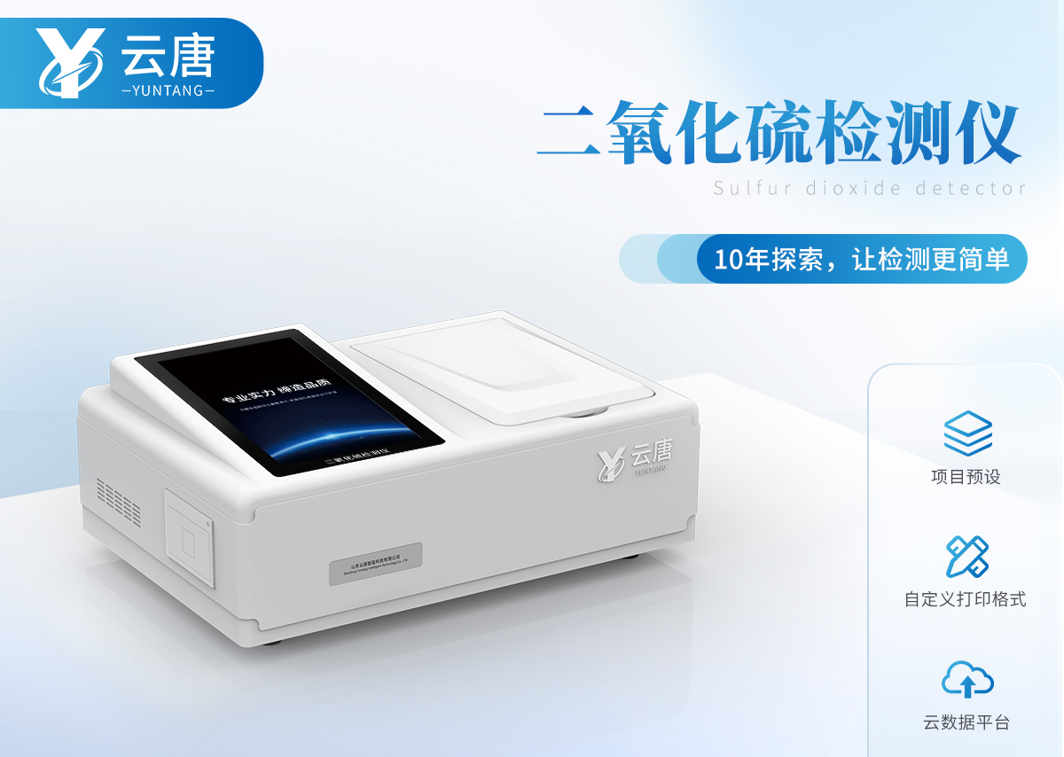 二氧化硫检测仪采用比色方法符合《GB/T5009.34—2003食品中亚硫酸盐的测定》二氧化硫检测仪广泛应用于、果脯、糖类、酒类、各类干果、草药、水产品、肉类干鲜品及肉制品中的二氧化硫含量测定。