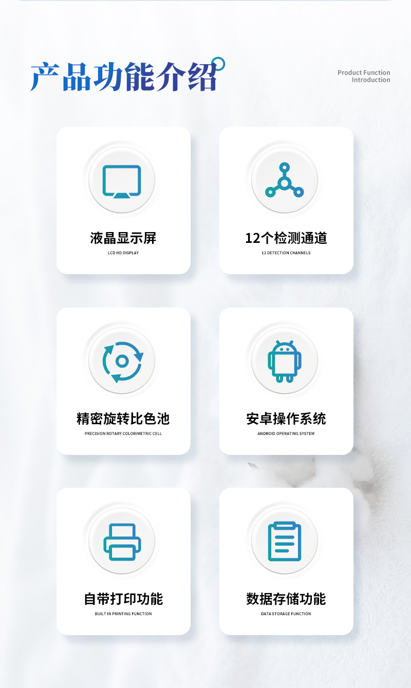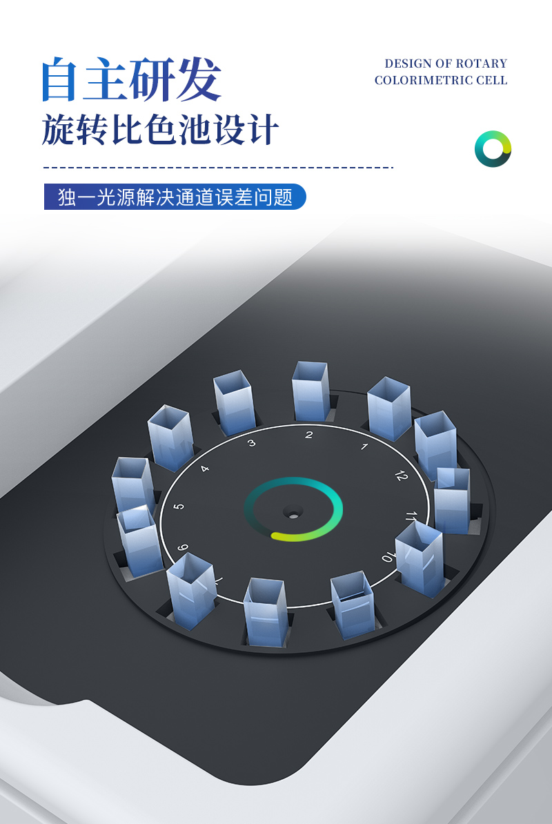 ④ 仪器采用精密旋转比色池设计,使用同光源校准精度,检测结果更为准确**。