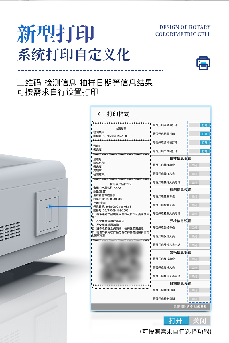 ⑥ 设备自带打印功能,可对样品信息及检测结果无限次随意打印。