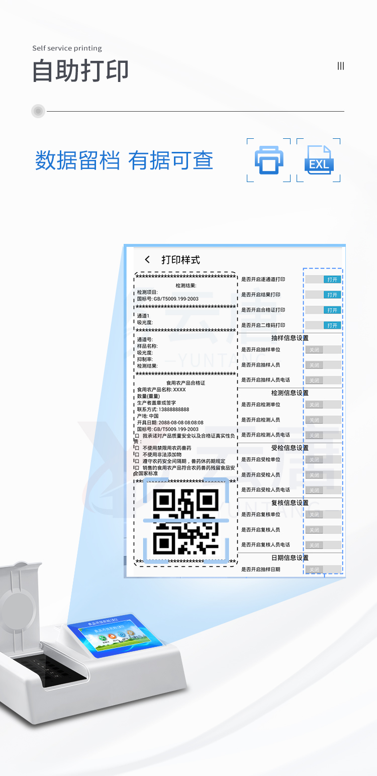 4、 配备嵌入式热敏打印机,可选择手动打印或者自动打印,三分钟出打印结果。