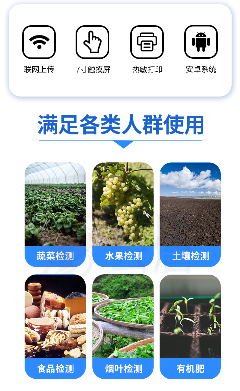 可对土壤、肥料、作物、蔬菜、水果、水质、食品等样品中的砷、铅、镉、铬、汞、铁、铝、锌、锰、铜等进行快速联合测定。