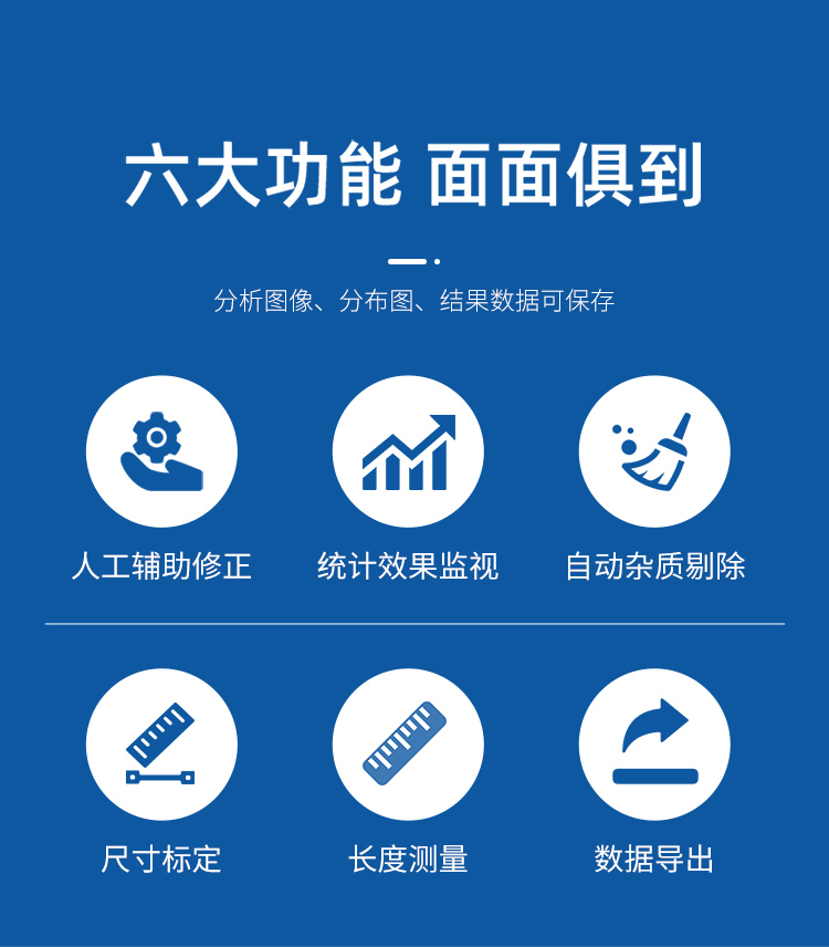 可不等间距地自定义分段直径,自动测量各直径段长度、投影面积、表面积、体积 等,及其分布参数;