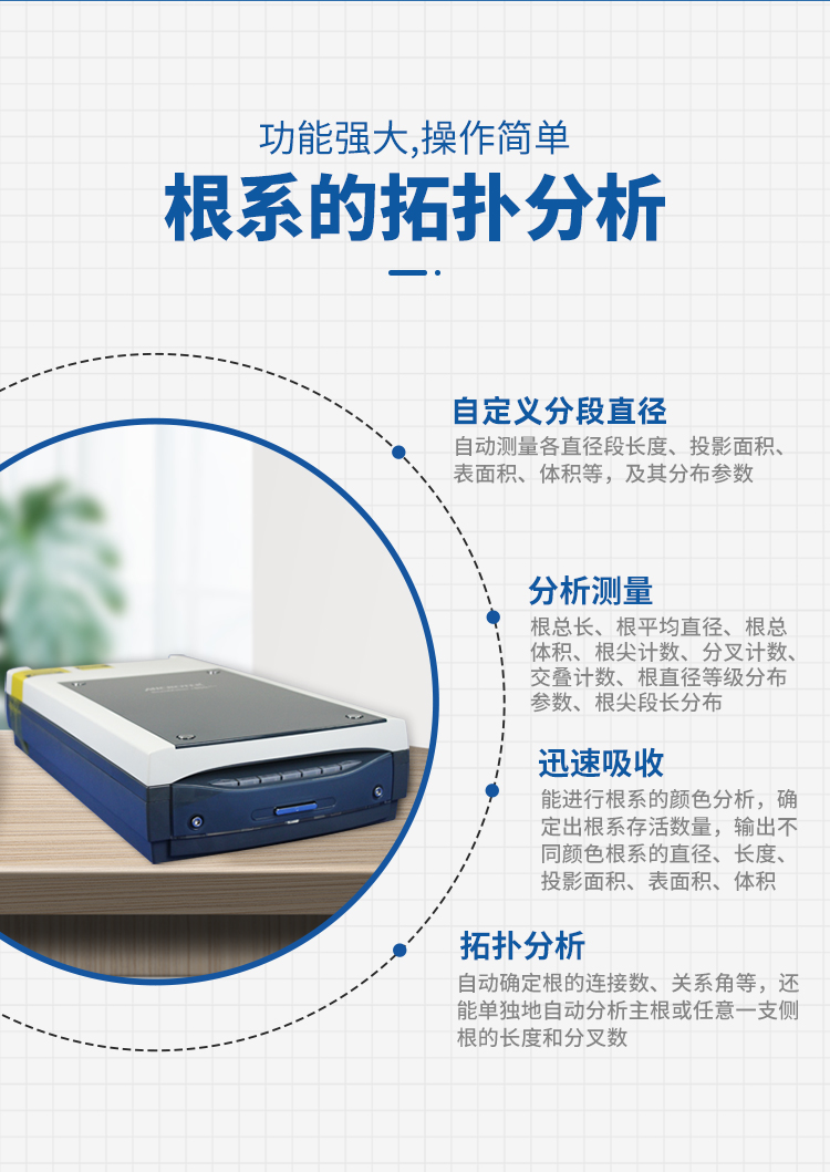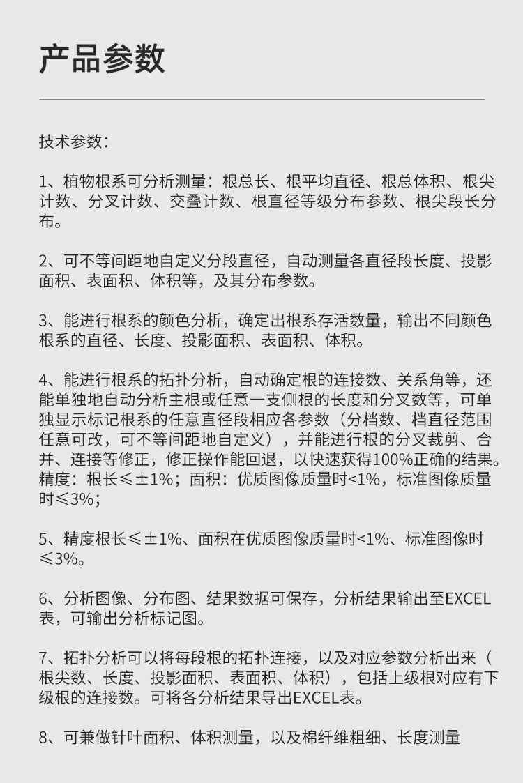 物根系分析仪器系统可分析测量根总长;